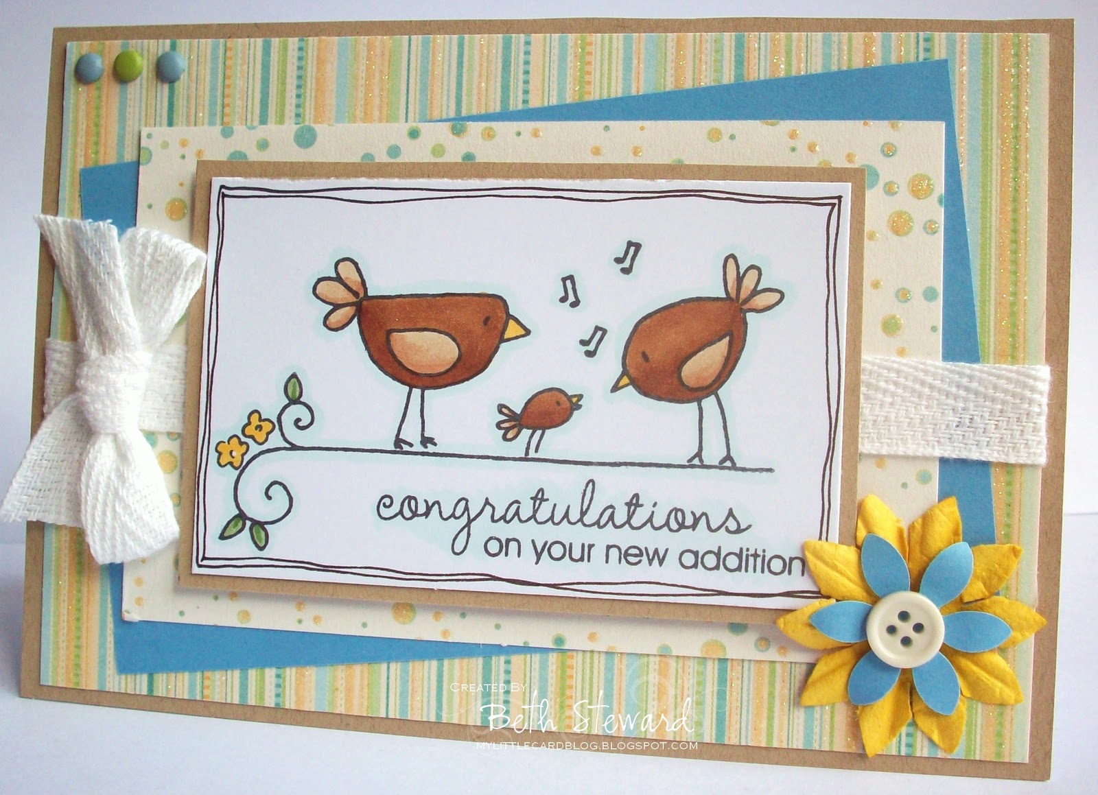 Again, a baby card (with such an adorable image!) and 2 of my other staples, Kraft card and Pink Petticoat!